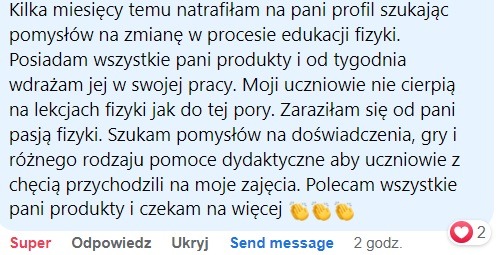 Prowadzę profil na Facebooku Pani od fizyki oraz grupę #KreatywnePanieodFizyki, które zrzeszają ponad tysiąc nauczycielek